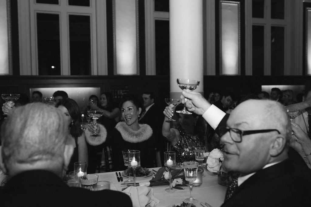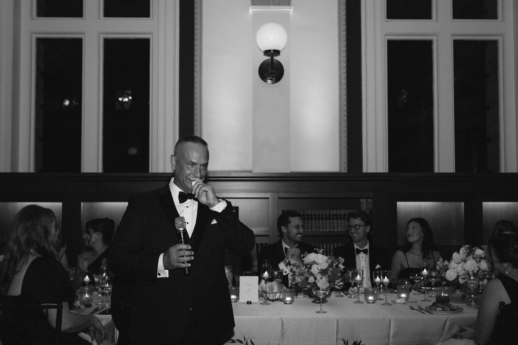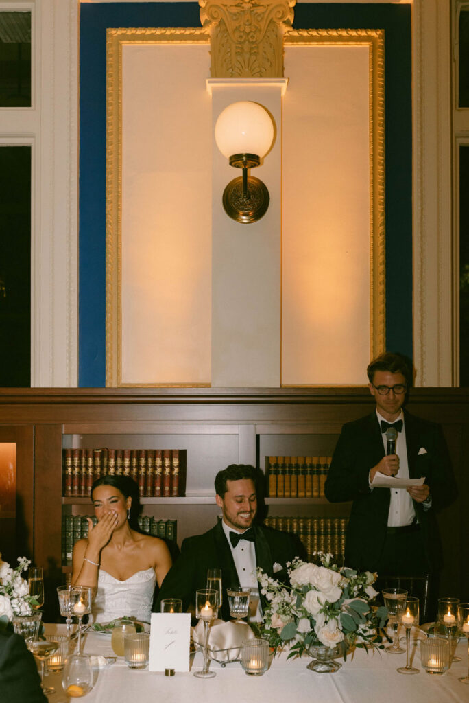 As guests dined beneath the dramatic architecture of the Ship Room, golden light flickered across glassware and floral petals. Laughter rose, champagne glasses clinked, and the evening unfolded at a pace that felt both celebratory and unhurried. Ultimately, the reception embodied everything a New England library wedding can be: sophisticated, atmospheric, and emotionally resonant.